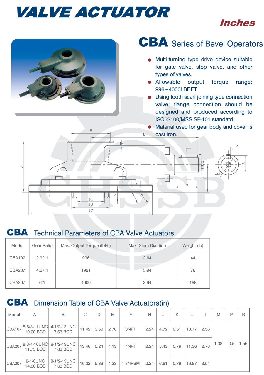 CB系列錐齒輪驅動器:該產品是一種全回轉經濟型驅動裝置,適用于閘閥、截至閥等閥板做直線運動的閥門。